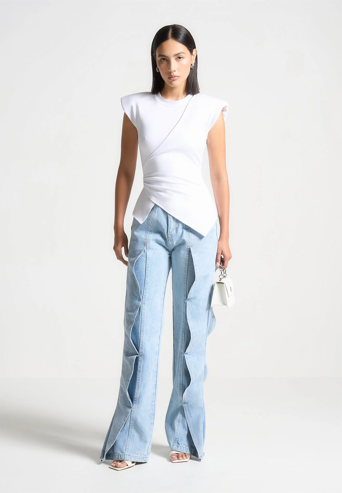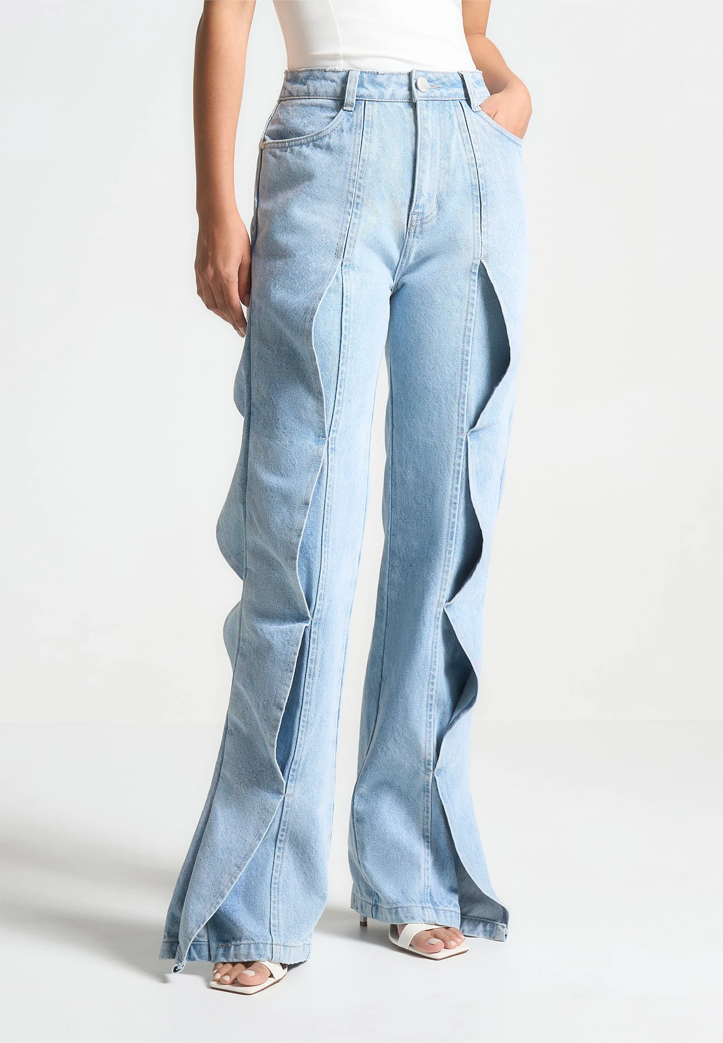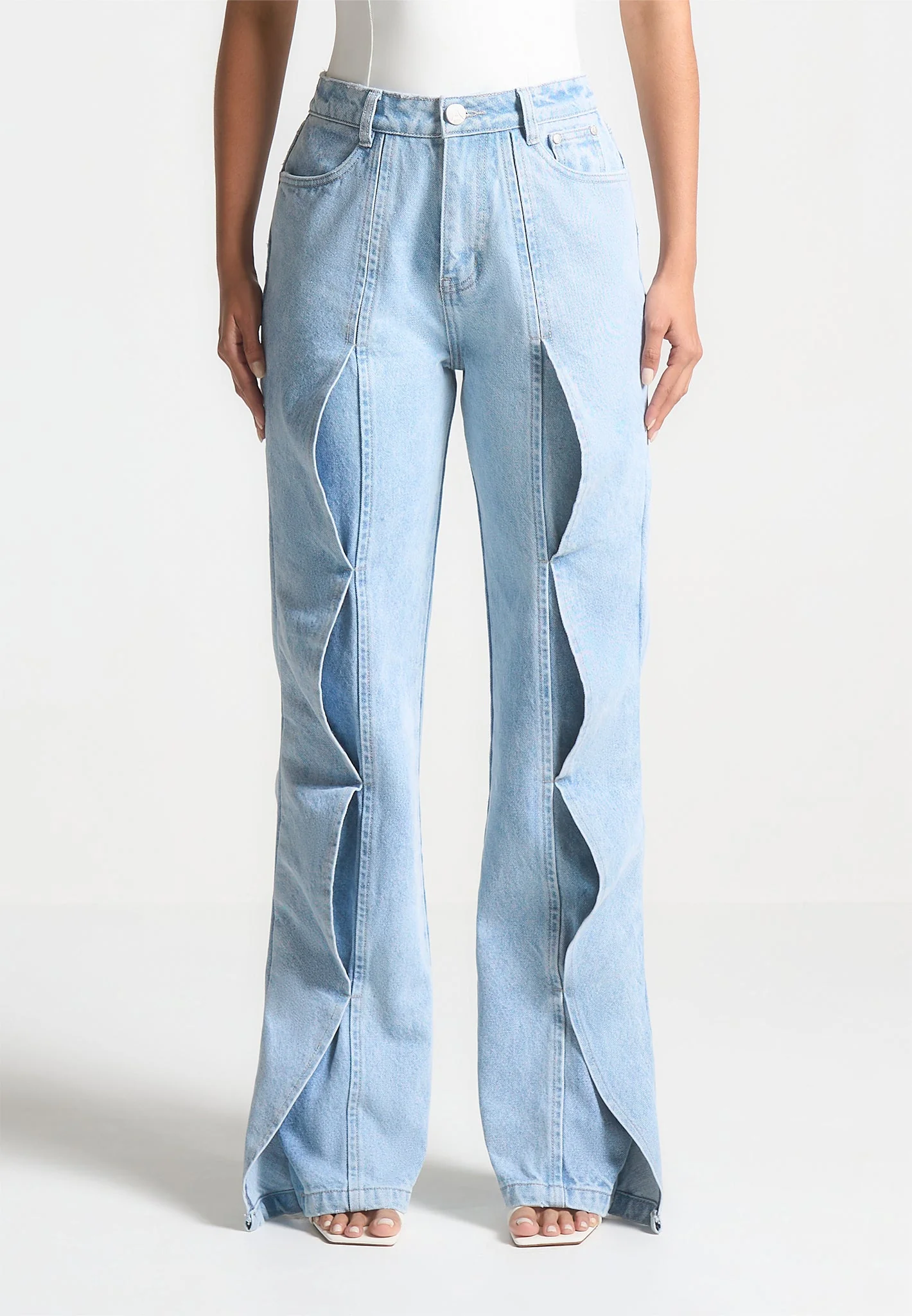 Maé – Wave Detail Straight Leg Jeans – Light Blue