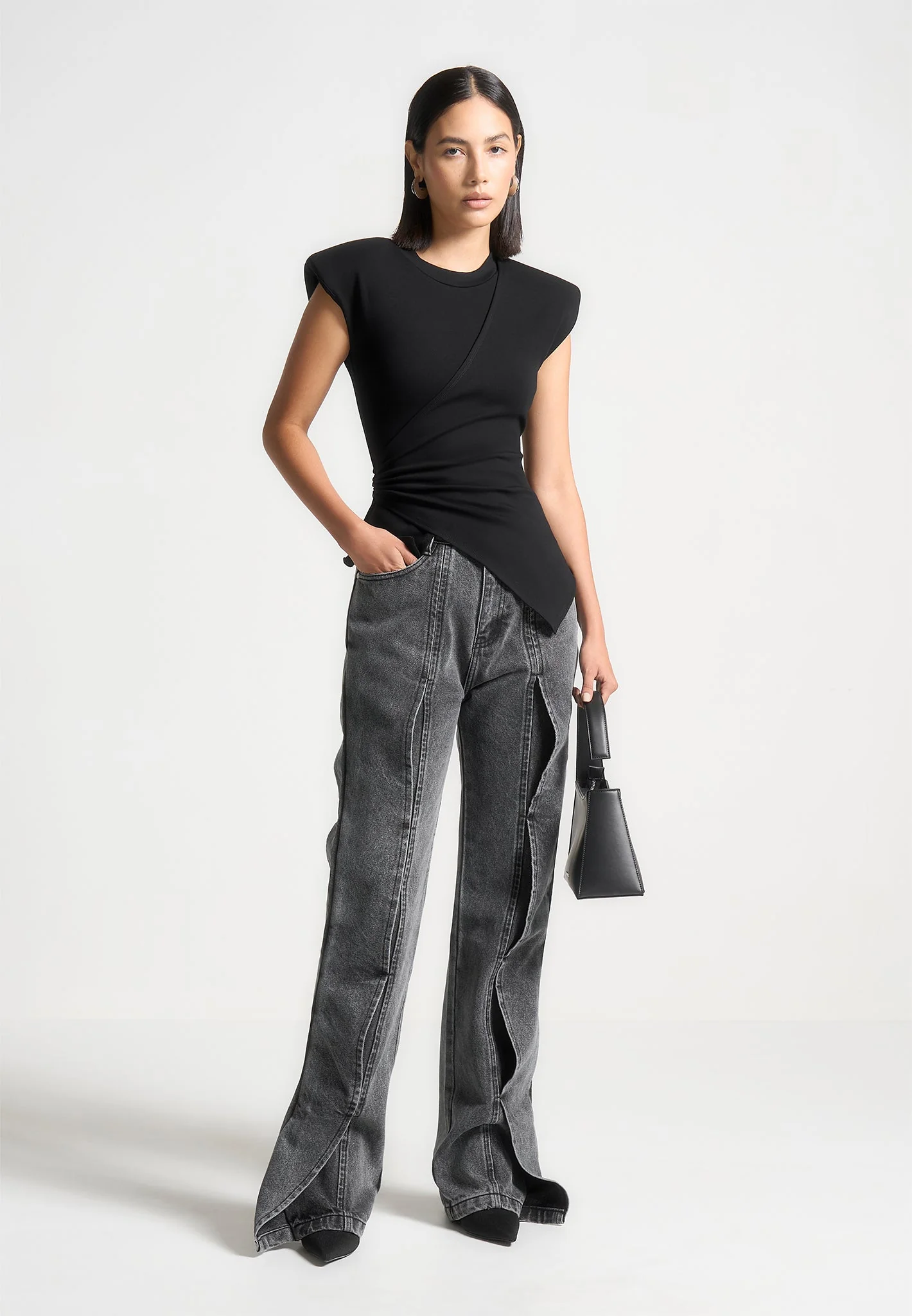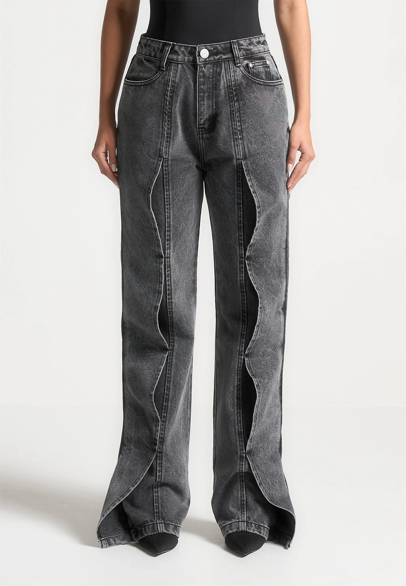 Maé – Wave Detail Straight Leg Jeans – Washed Grey