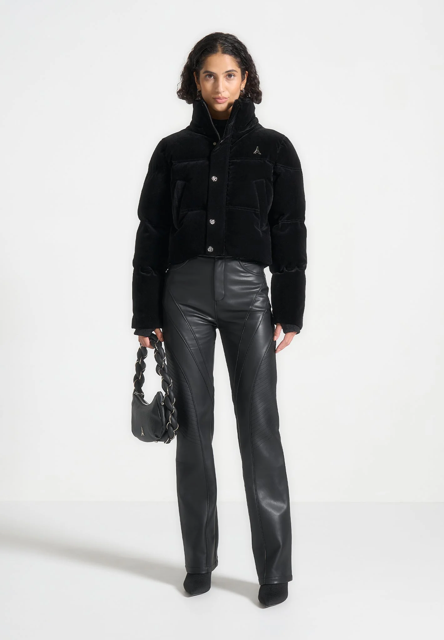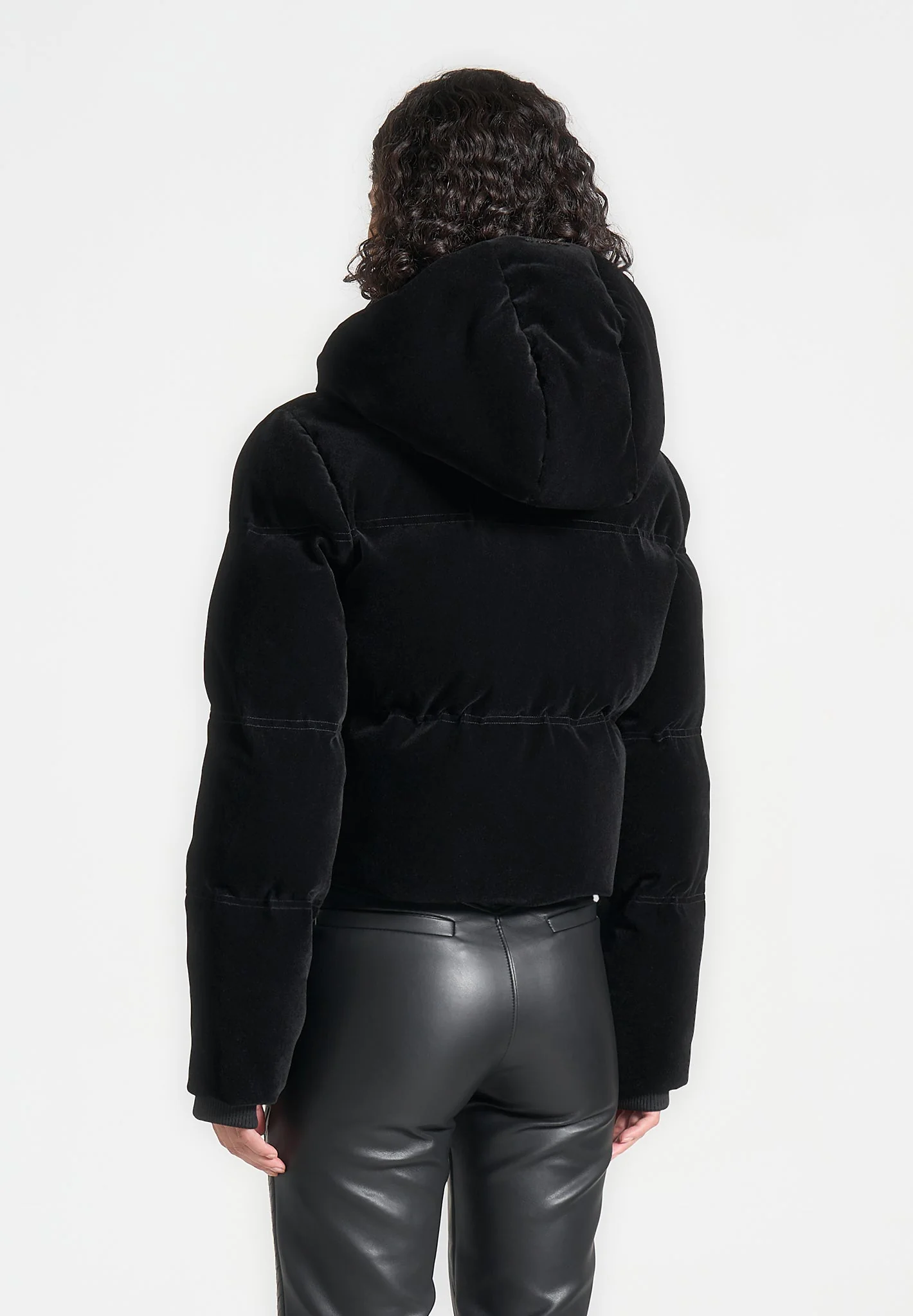 Maeva – Velvet Cropped Puffer Jacket – Black
