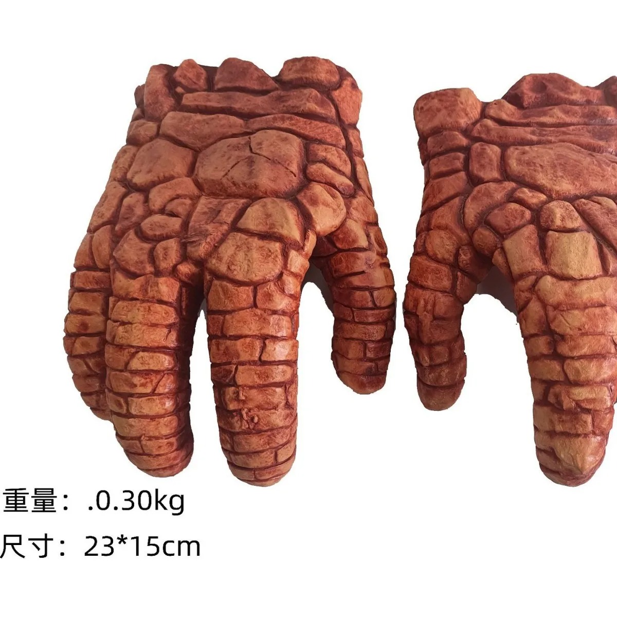 Set cosplay The Thing comprenant un masque réaliste en latex et une paire de gants effet roche. Parfait pour conventions, Halloween ou collection.