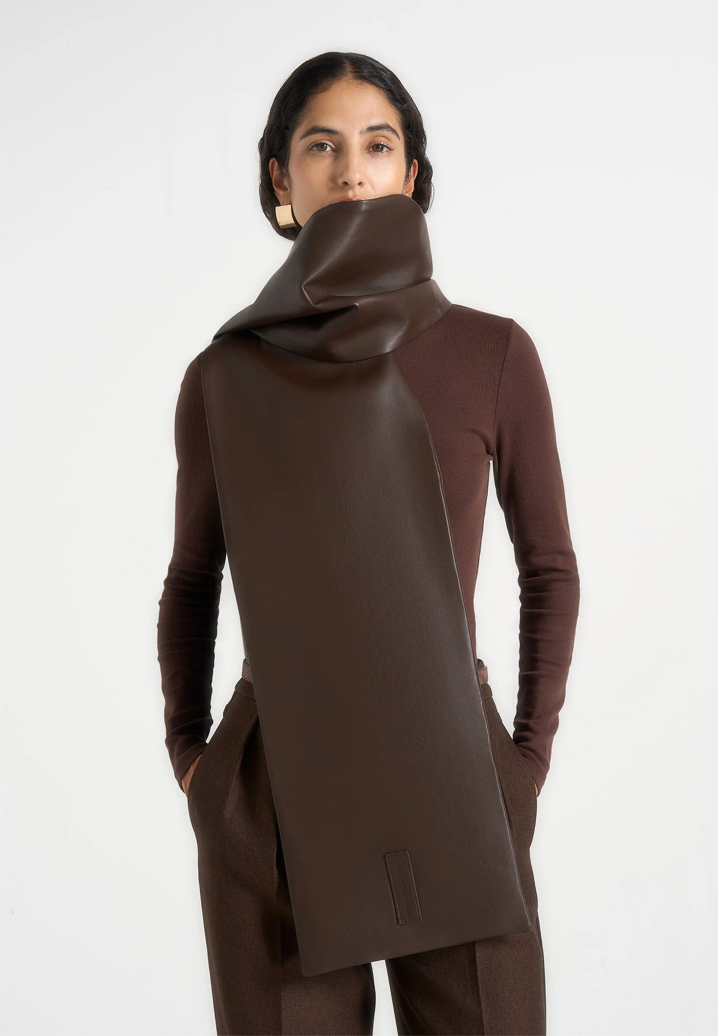 Melia – Reversible Leather & Suede Scarf – Brown