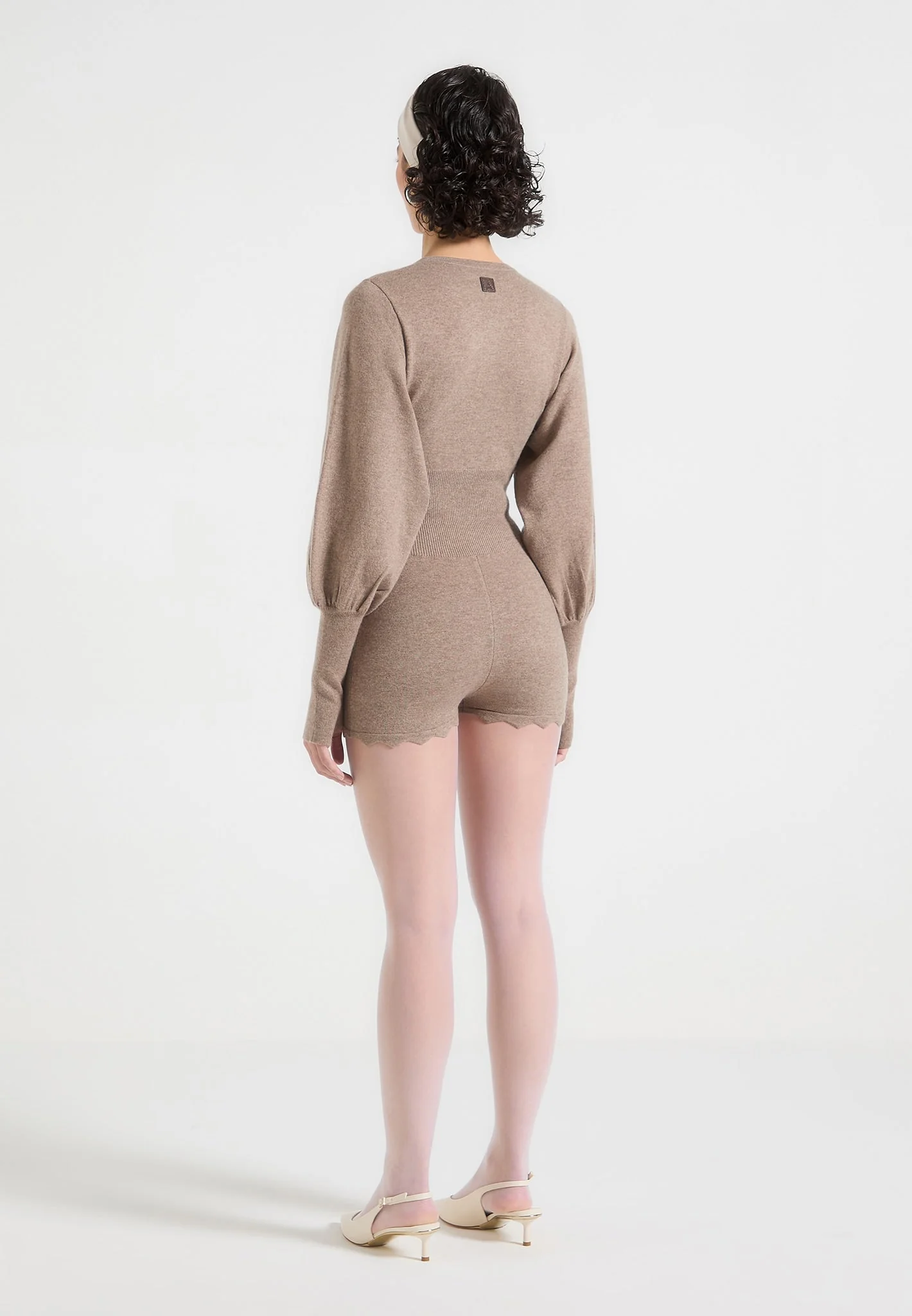 Michele – Knitted Scallop Hem Playsuit – Taupe