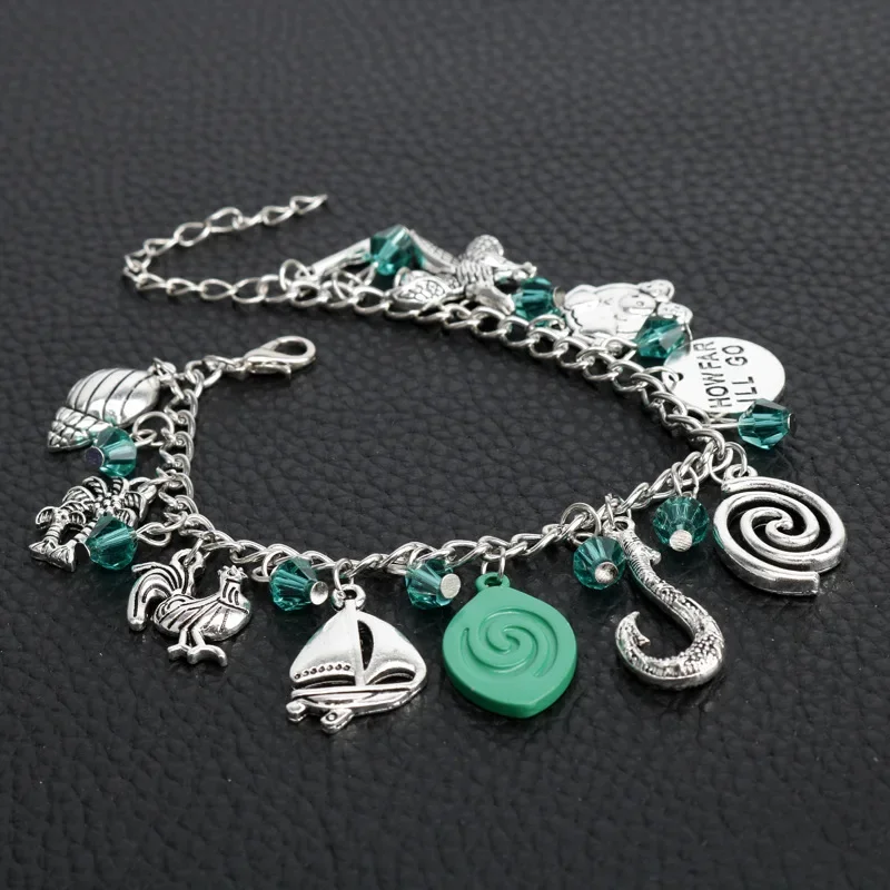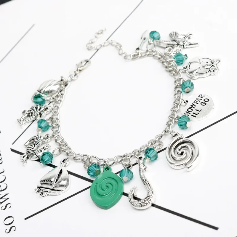 🌊 Bracelet Breloques Moana – Alliage résistant ✔️ Alliage métal ✨ Taille ajustable 🔥 Style polynésien – Ce ravissant bracelet à breloques inspiré de Moana complète parfaitement votre tenue d’aventurière des mers !