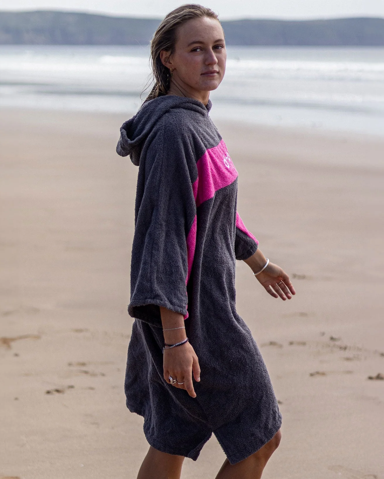 Super-soft-to-touch and highly absorbent, it’s designed to get you dry quickly. The unique ¾ length sleeve style allows you to use both hands to free yourself from the clutches of the super-stretch wetsuit, or get your beach wear off and back on without over-exposing yourself.