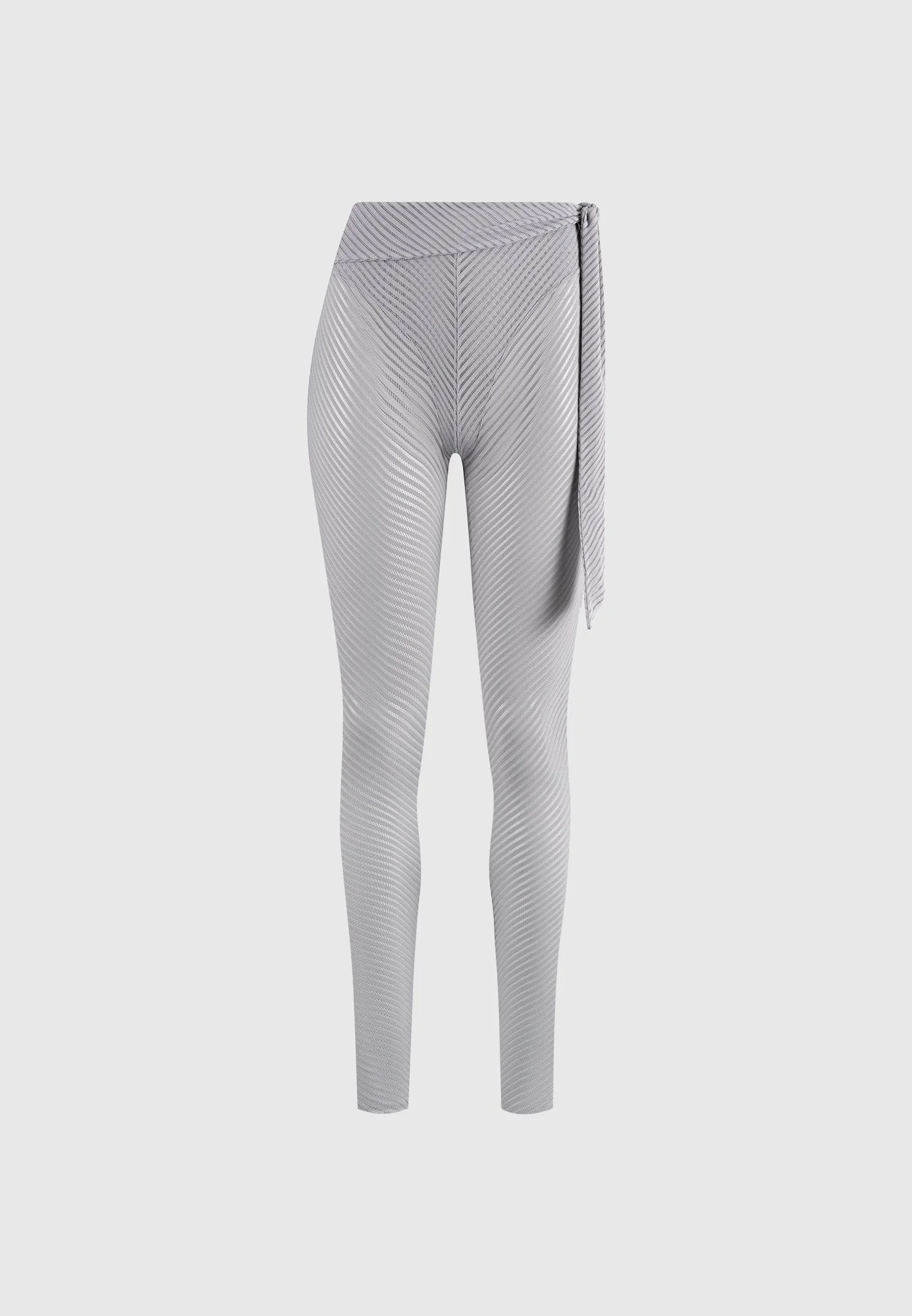 Enhance your figure with our Ribbed Sheer Leggings with Tie. The mesh fabric is designed to provide a unique and flattering fit that will make a statement in any outfit. Experience the perfect blend of style and comfort with these must-have leggings.