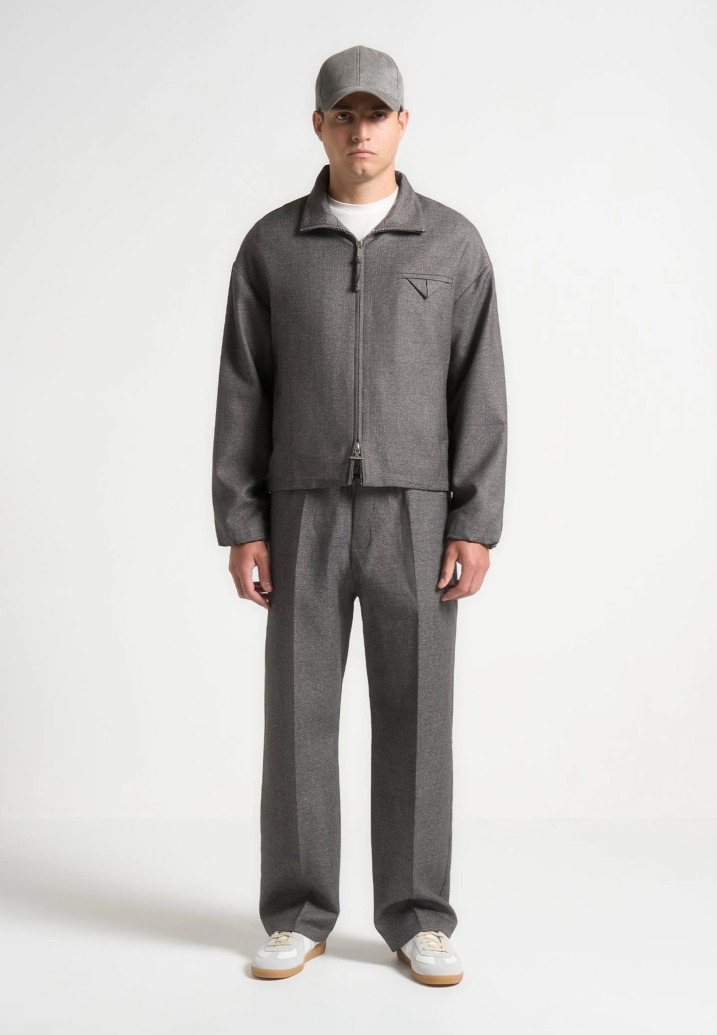 Tailored Funnel Neck Jacket – Grey