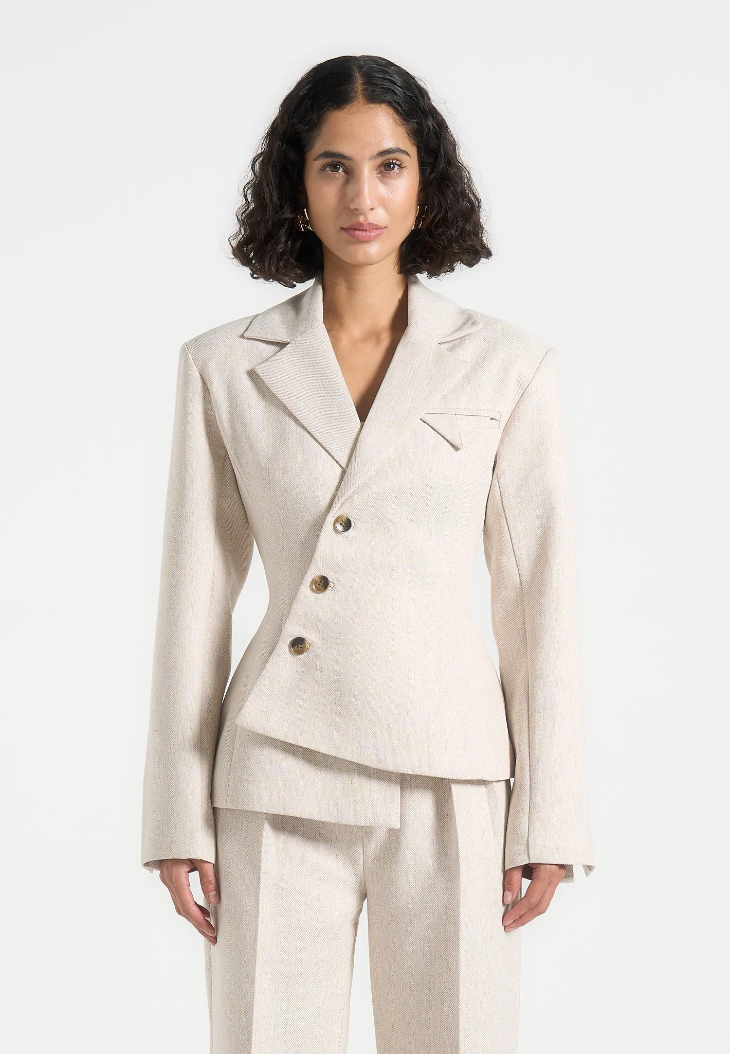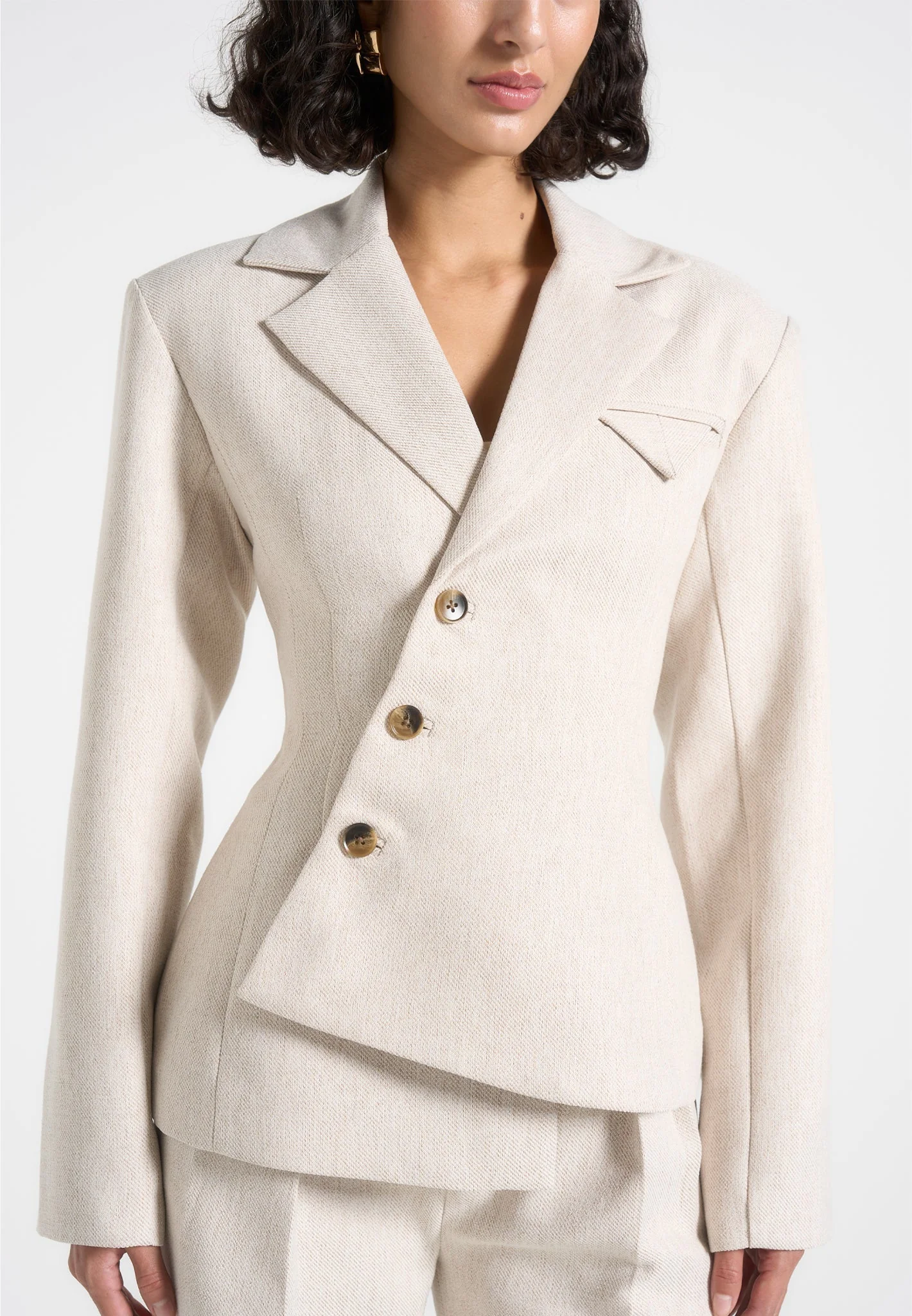 Thalia – Tailored Asymmetric Double Breasted Blazer – Light Beige