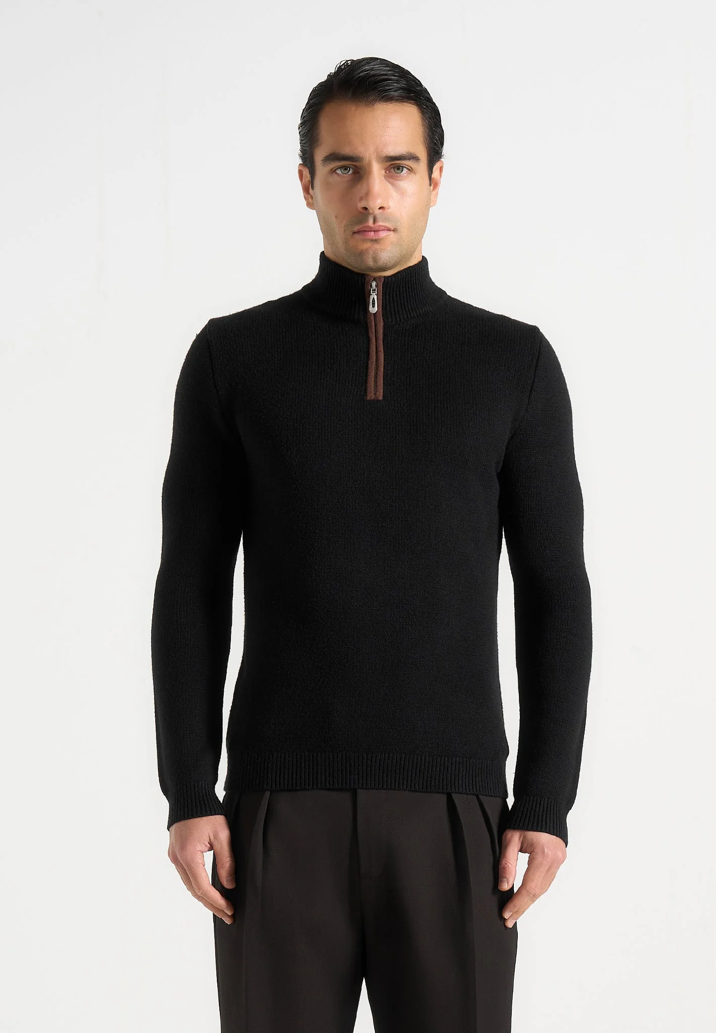 Blending comfort with a clean design, this quarter-zip is crafted from soft knitted fabric for effortless wear. The zip neckline adds a contemporary touch, enhanced by contrast colour detailing that introduces subtle definition. Finished with ribbed hem and cuffs for a structured fit, it serves as a versatile layer that moves easily between casual and elevated styling.