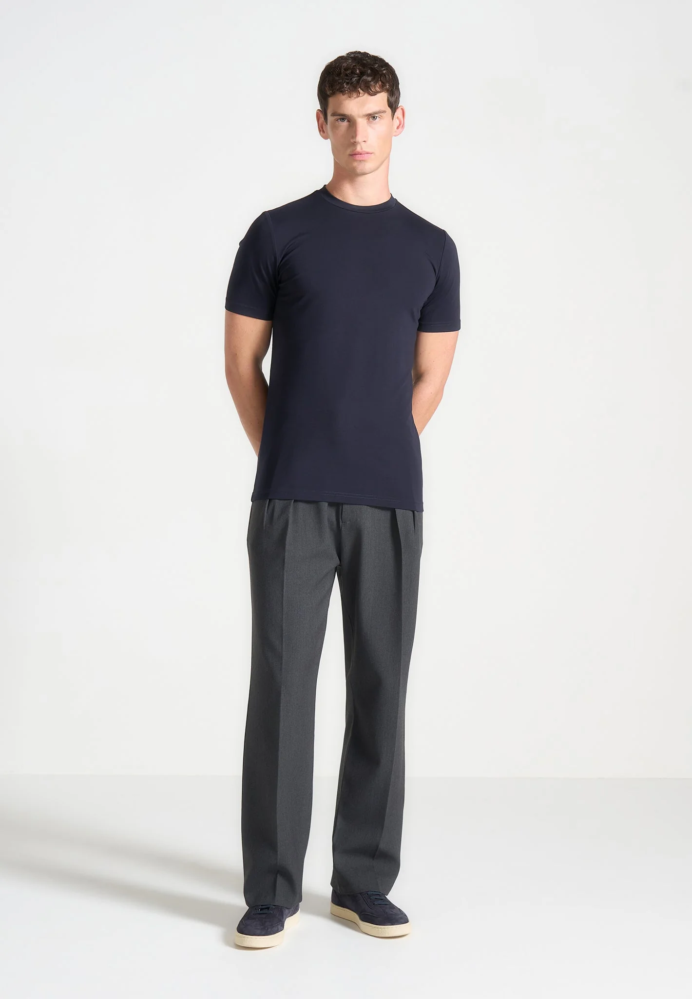 Elevate your wardrobe effortlessly with the Éternel Fitted Luxe T-Shirt in Navy. Embodying a blend of comfort and contemporary style, this classic piece features a fitted silhouette that enhances your physique. A versatile and timeless addition to your collection, it serves as an essential staple to compliment any ensemble.