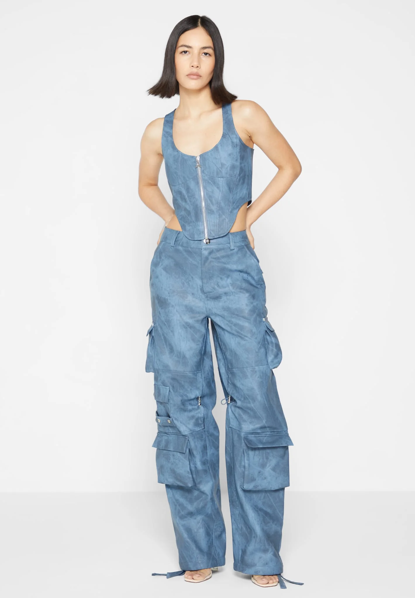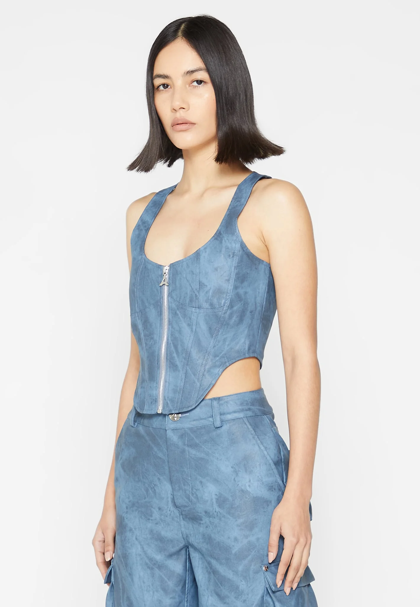 Vintage Marble Leather Corset Top – Washed Blue