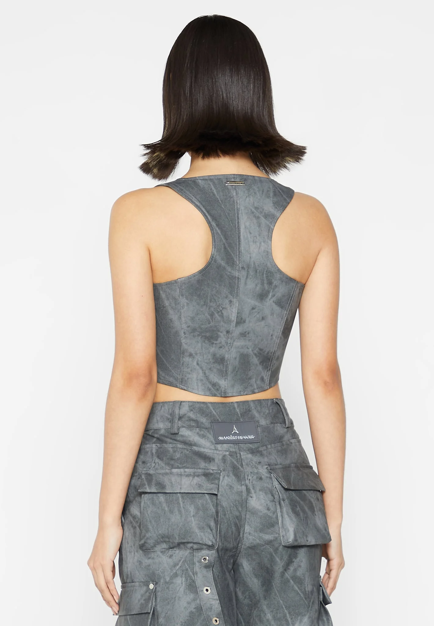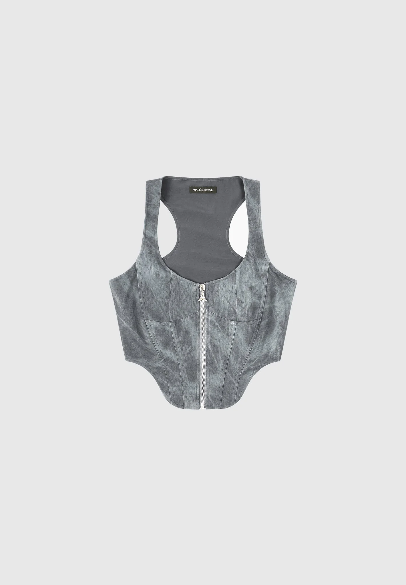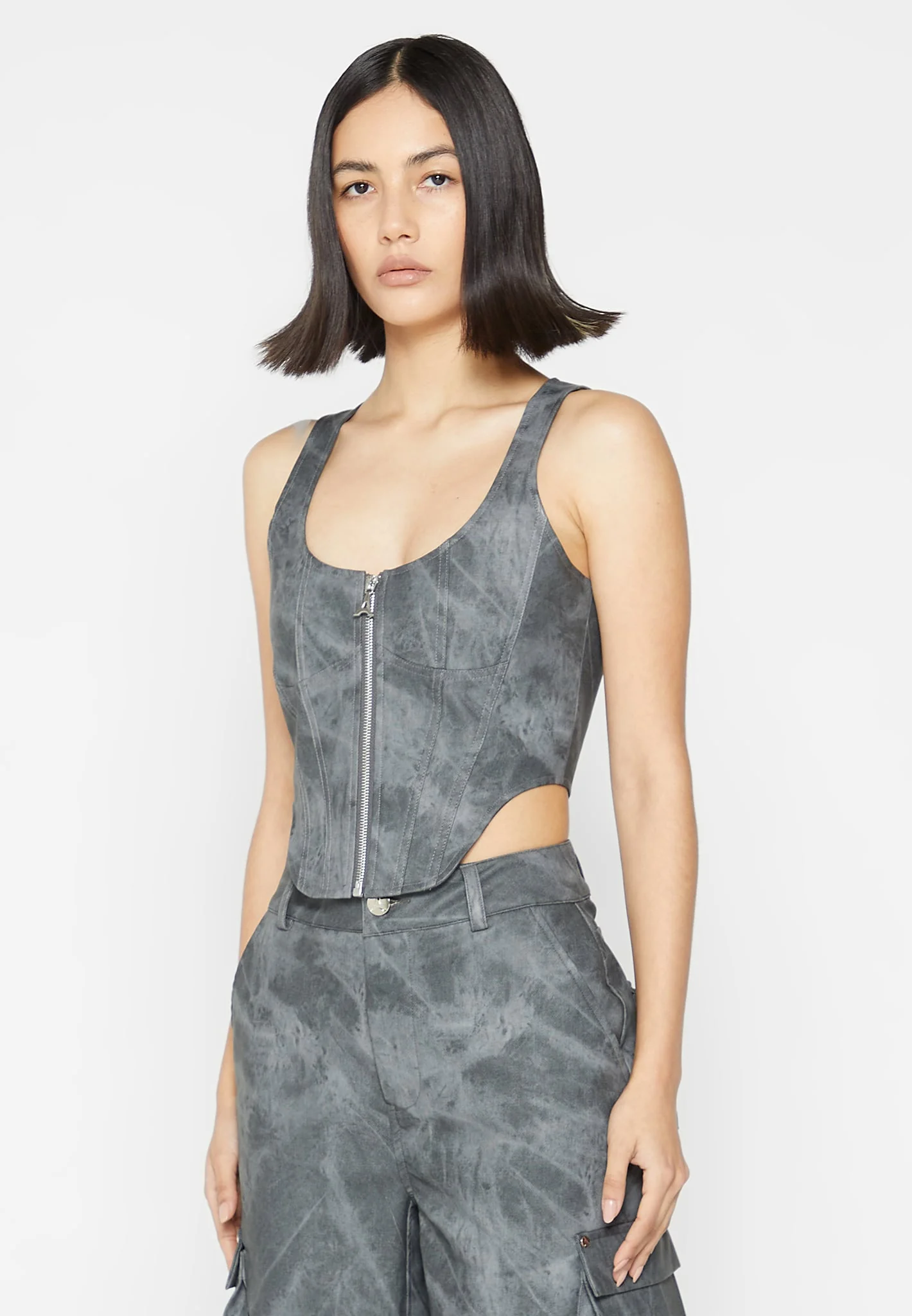Vintage Marble Leather Corset Top – Washed Grey