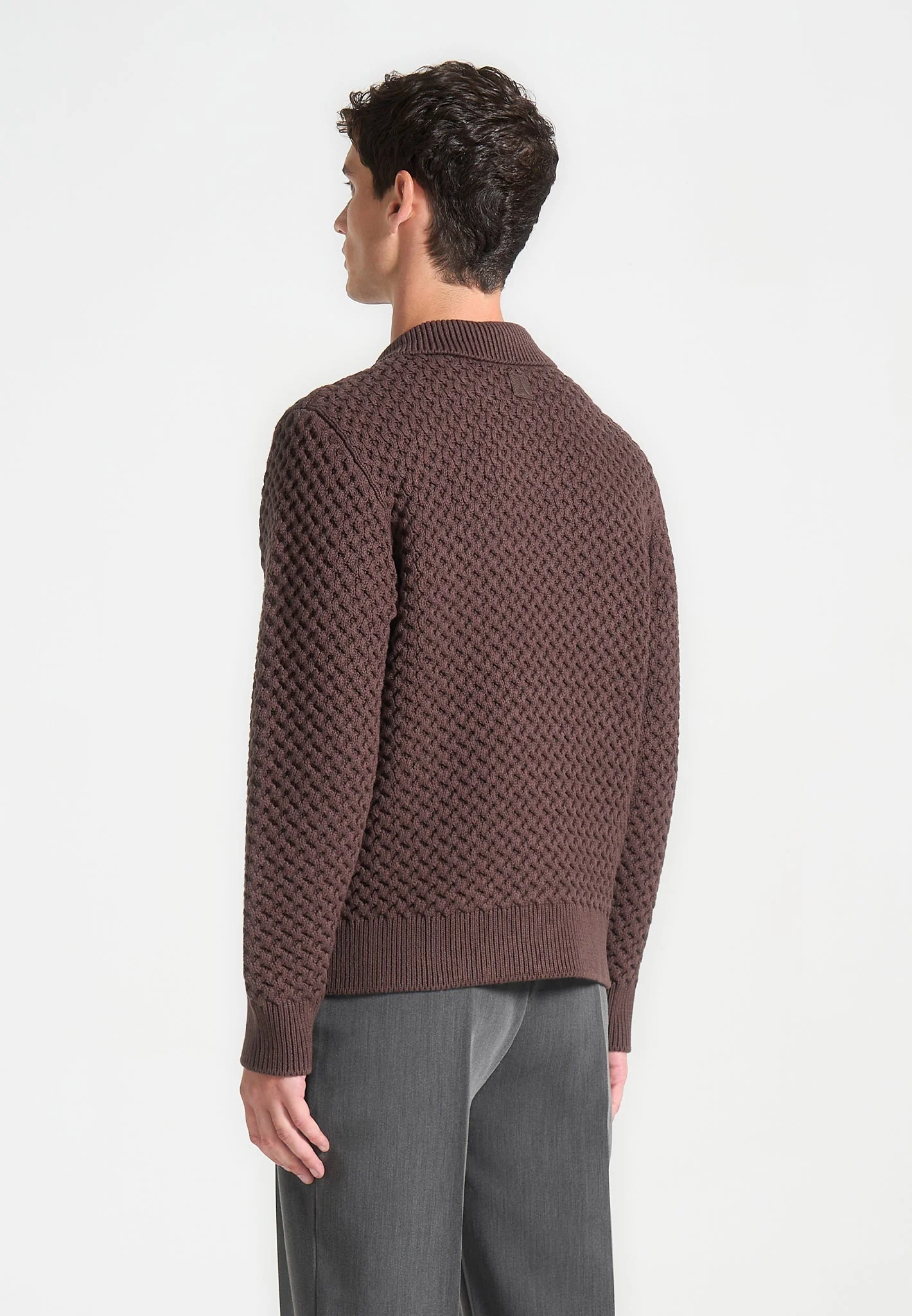 Waffle Knit Polo Jumper – Brown