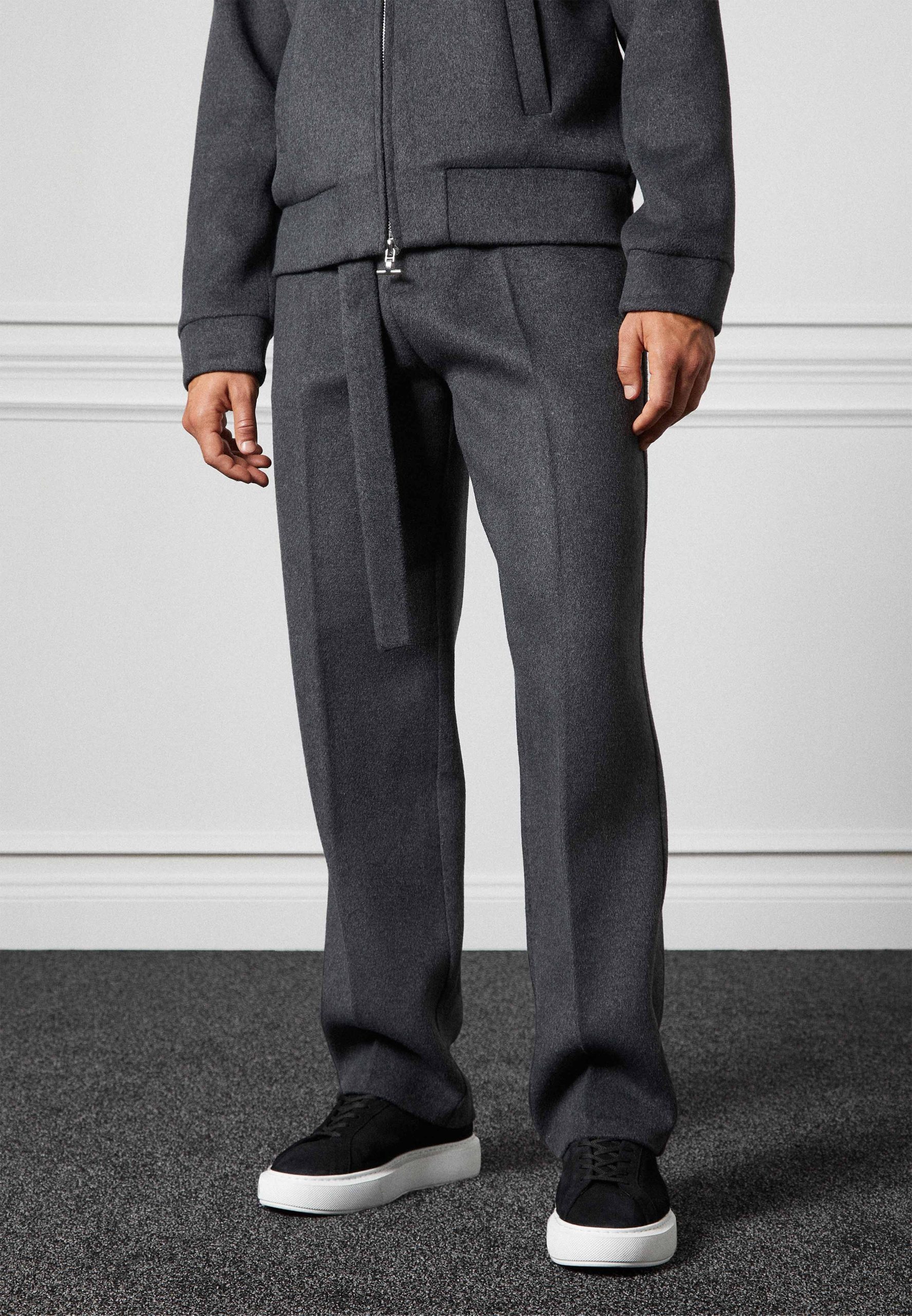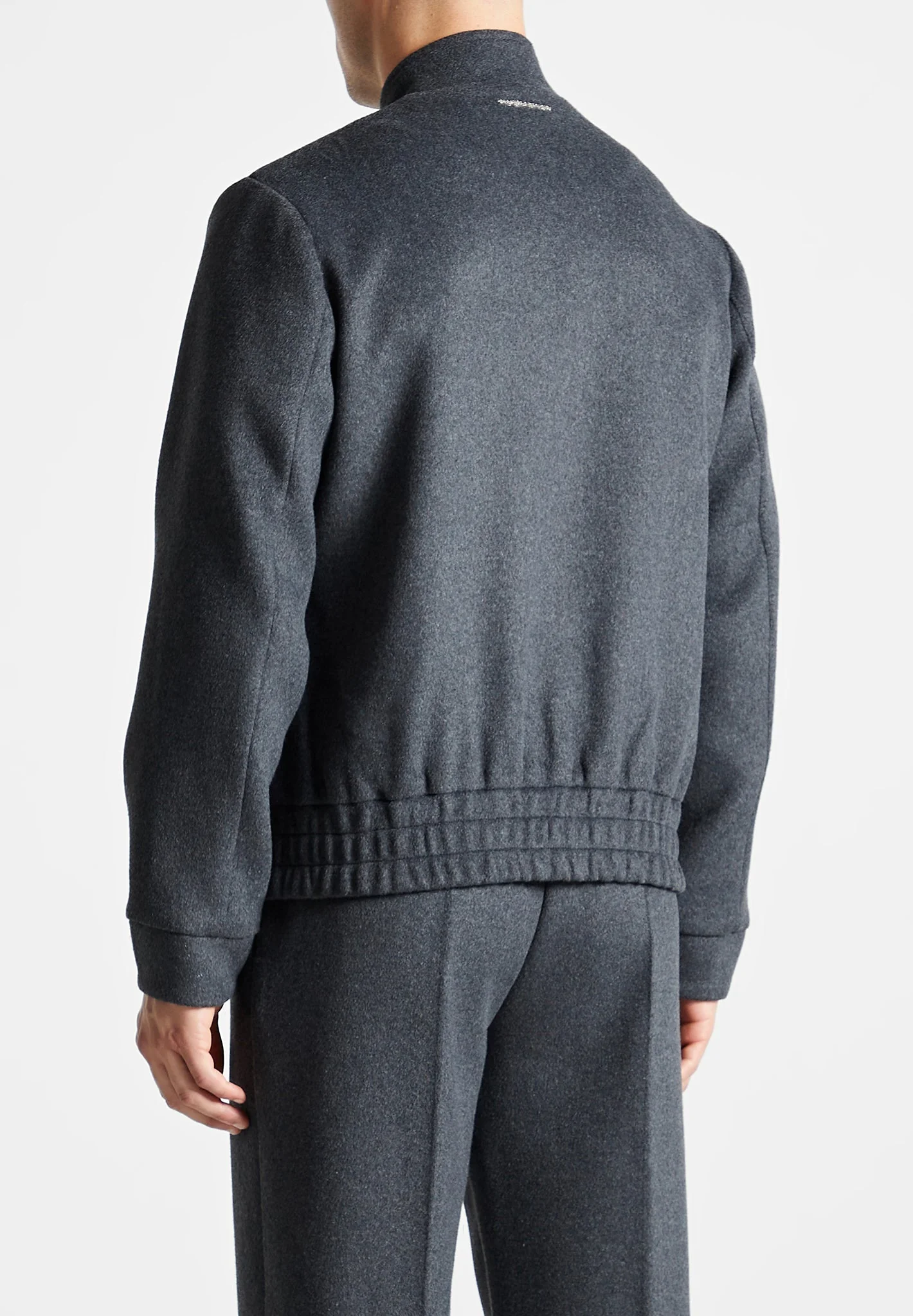 Featuring a bomber silhouette, this wool blend marl bomber jacket in a staple charcoal grey is the perfect way to stay warm in ultimate comfort and style. Crafted from a sumptuous wool blend. Complete the look with our Wool Belted Trousers.