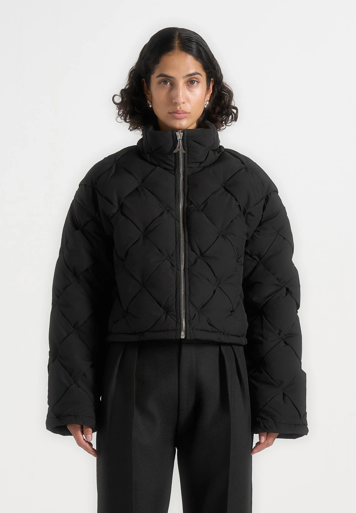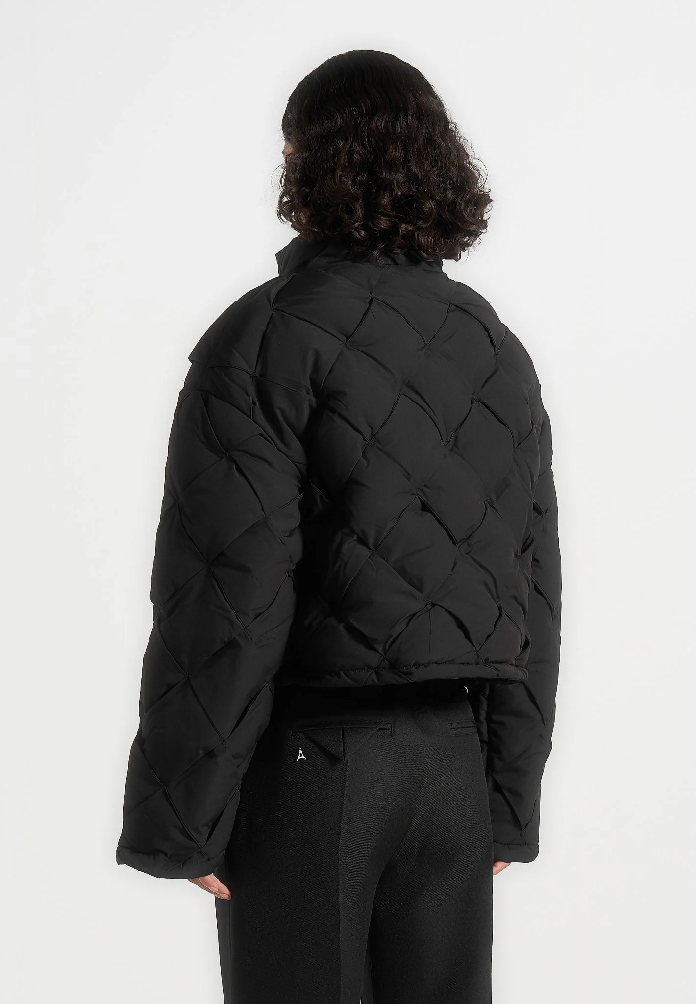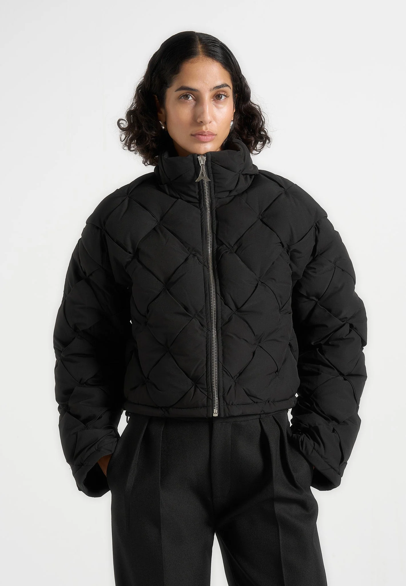Woven Interlock Puffer Jacket – Black