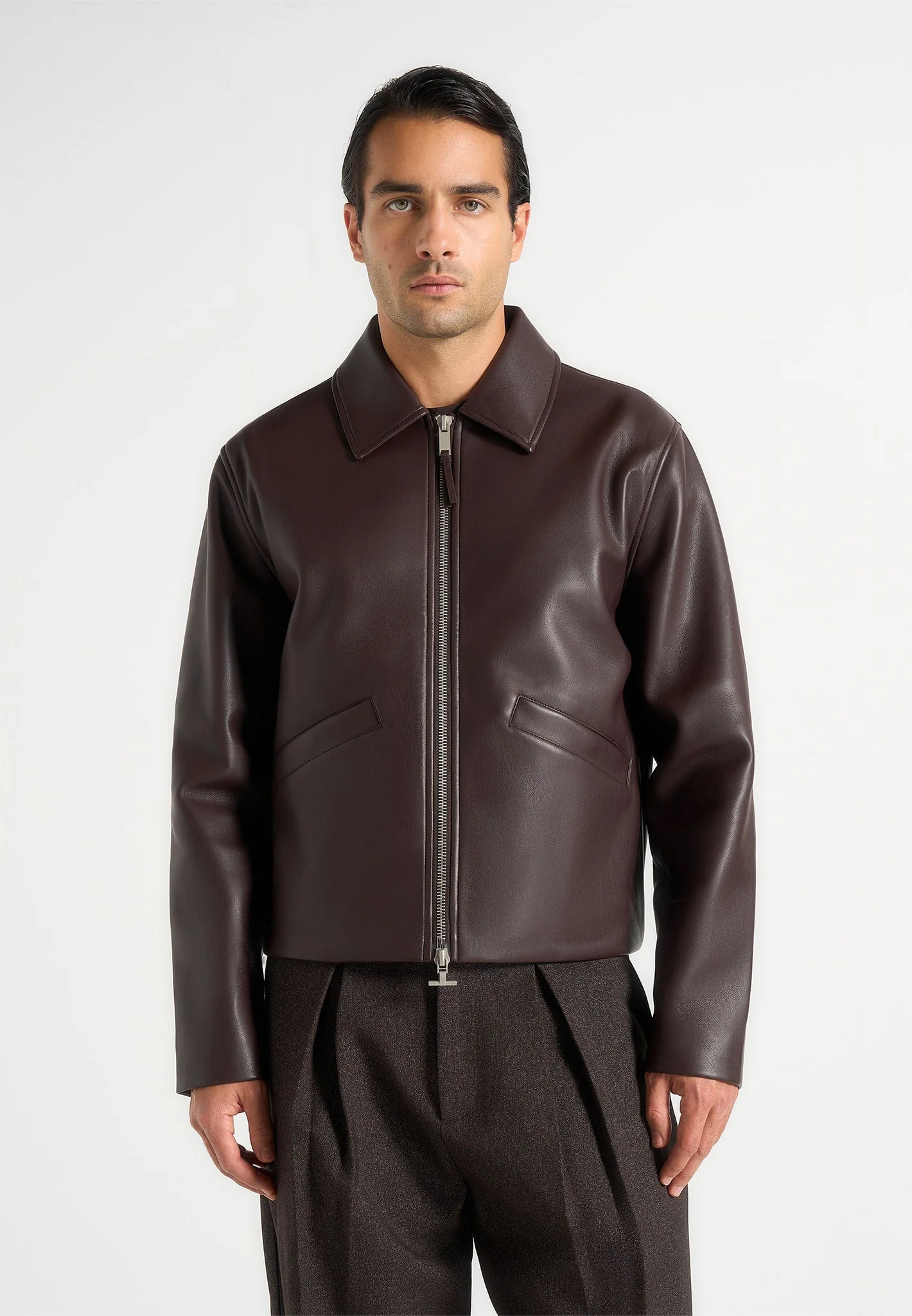 Yves – Minimal Leather Jacket – Brown