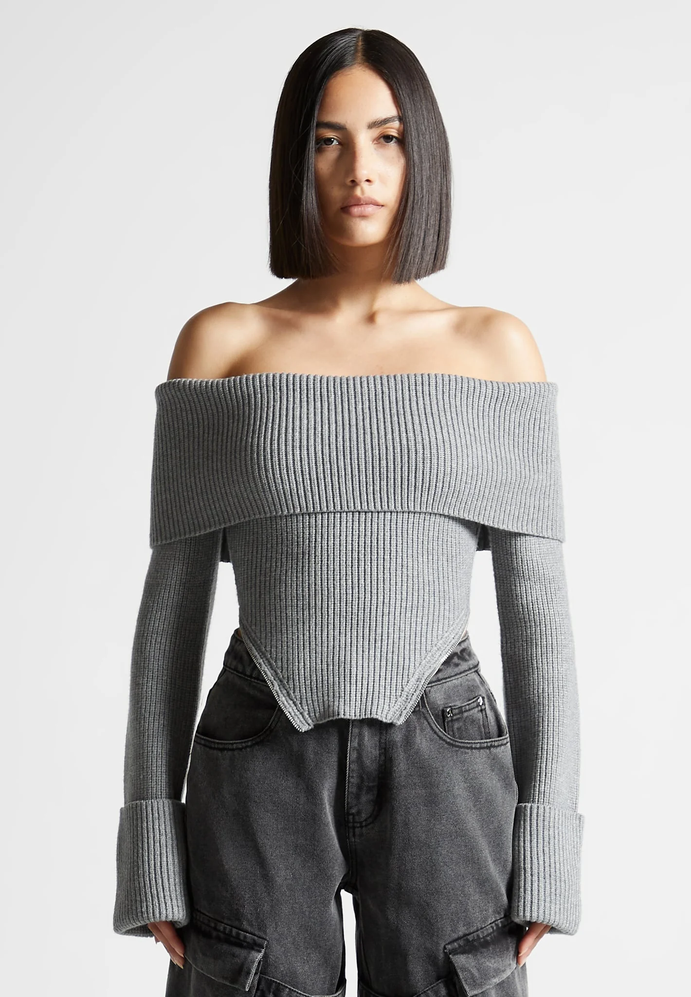 Zip Detail Knit Bandeau Top – Grey